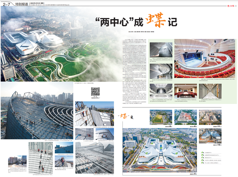 从空中俯瞰,好似一只展翅飞翔的蝴蝶,在阳光的照射下,熠熠生辉,这座建筑就是位于衢州市智慧新城的文化艺术中心与便民服务中心(以下简称“两中心”)。